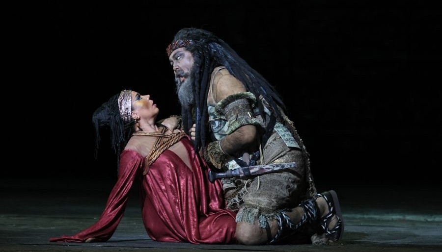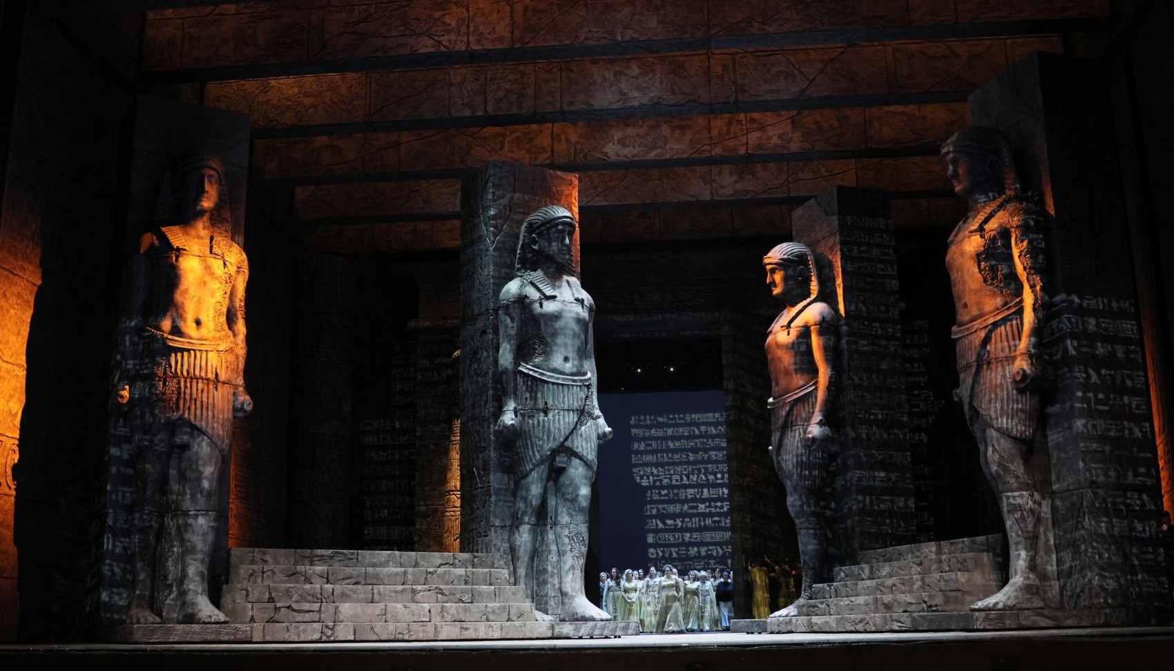 В длинной истории Египта мы нашли очень интересный период, когда он был завоеван Суданом и там появились чернокожие фараоны. Это потом египетскими царями становятся выходцы из Греции. А наш исторический период ограничен восьмьюдесятью годами. У нас фараон черный, вся сценография черная, масса очень красивого, разнообразного черного цвета. Идея этого черного сияния возникла благодаря археологическим находкам: было обнаружено множество статуй фараонов, изготовленных из черного вулканического камня. Сцена станет выглядеть так, словно она покрыта вулканической пылью и песком, среди которого будут поблескивать кристаллические "стеклышки", ведь, как известно, в производстве стекла используется песок», — Джанкарло дель Монако, режиссёр.