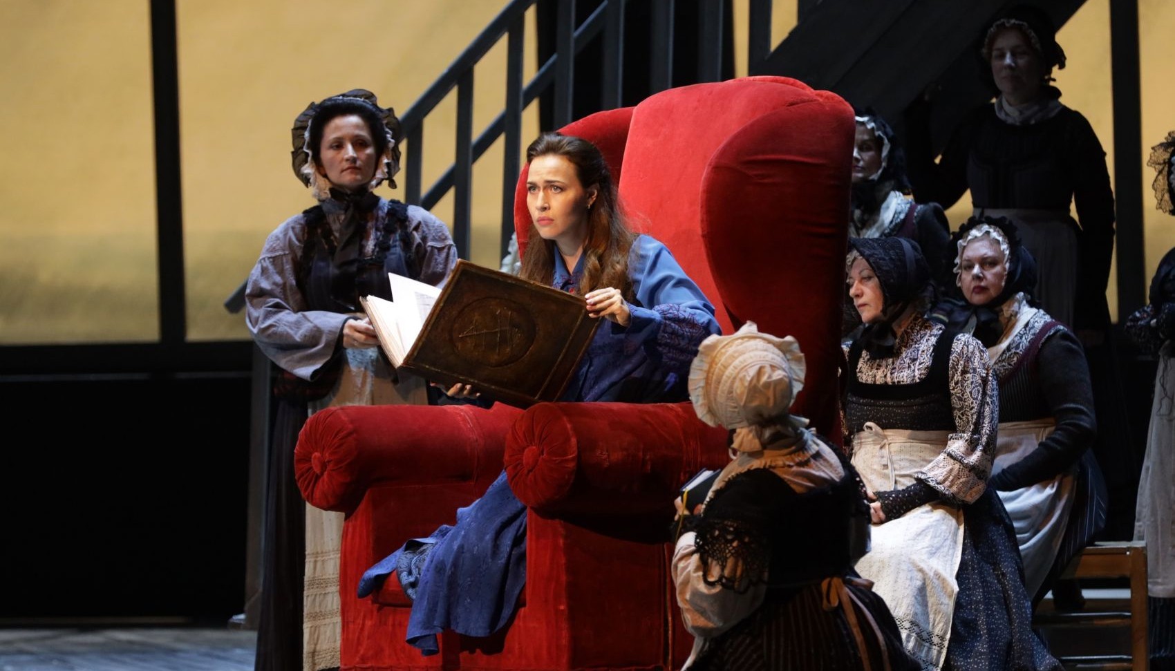 В доме Даланда подружки Сенты за прялками поют песню. Сама Сента не работает, она не сводит глаз с портрета моряка. Напрасно Мария, кормилица Сенты, корит ее за безделье, напрасно напоминает ей о влюбленном в нее Эрике.