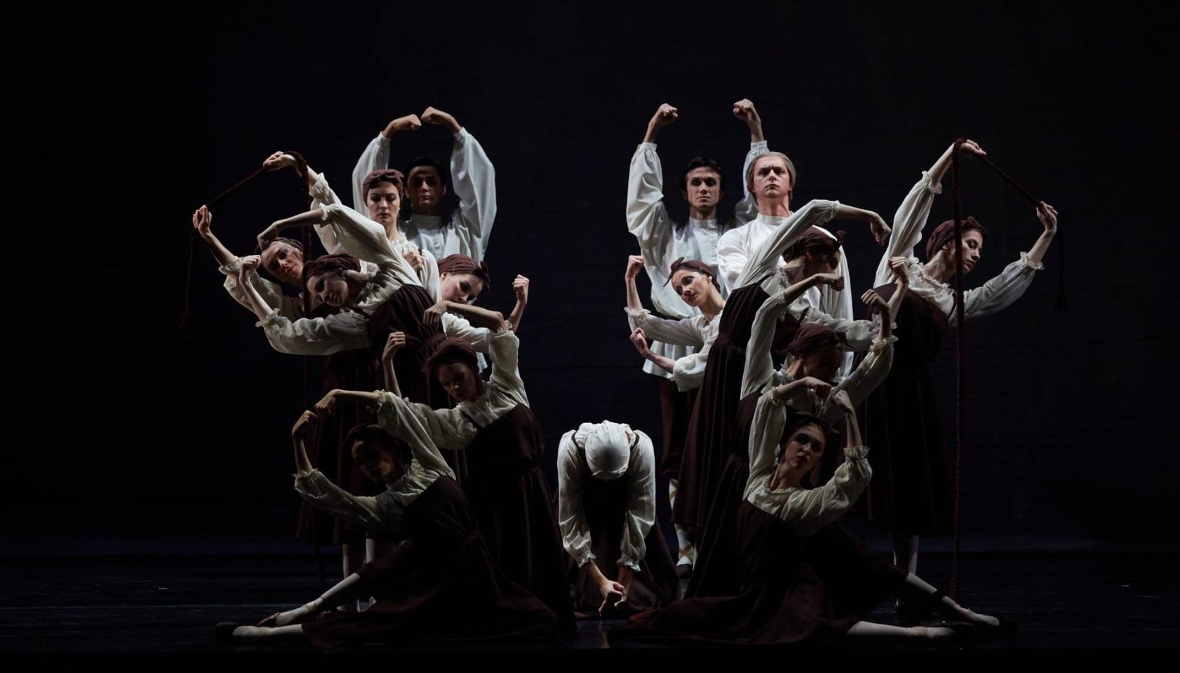 Предельный минимализм в подчиненности танца холодноватой геометрии рисунка, в настойчивом повторении однообразных движений, в простоте двухцветных коричнево-белых костюмов, придуманных Натальей Гончаровой, в нарочитой бесстрастности исполнителей — все в спектакле было актуально в контексте авангарда 1920-х. И в острой современности балета не потерялась исходная русскость «Свадебки» — не лубочная и сувенирная, а условно ритуальная, где действие происходит, как в заведенном механизме: фигурки танцовщиков монотонно перемещаются, словно подчиняясь воле одного повелителя, старинного и непреложного обряда. Ольга Макарова.