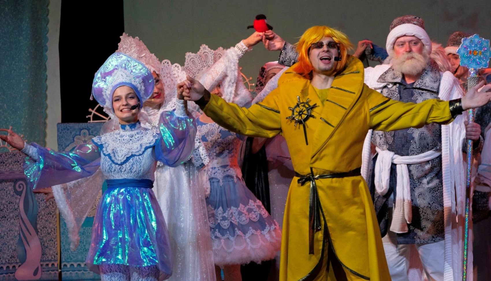 Новые, необычные сказочные персонажи, костюмы и декорации с использованием элементов вологодских кружев, а также современный оригинальный авторский музыкальный материал с элементами народного звучания.