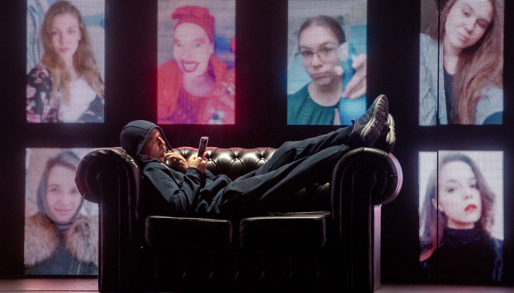 Противопоставление реального мира и мира придуманного отражено и в сценографии спектакля, которая создана с применением компьютерных технологий. Настоящая реальность сложна, тяжела и часто агрессивна. Виртуальный мир разнообразен, ярок и заманчив, тут все проблемы можно решить одним нажатием кнопки. В том числе и проблему одиночества. Но, если реальная жизнь со всеми её сложностями исчезнет, заменится цифрой, что останется?.. Останемся ли мы людьми?.. И останемся ли вообще?..